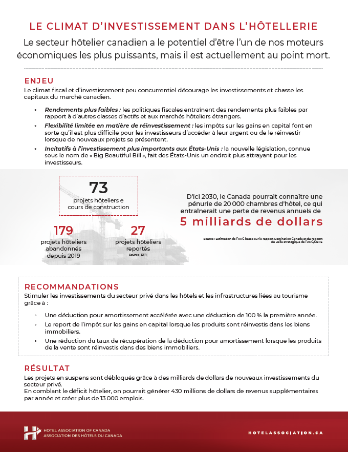 Le secteur hôtelier canadien a le potentiel d’être l’un de nos moteurs économiques les plus puissants, mais il est actuellement au point mort.