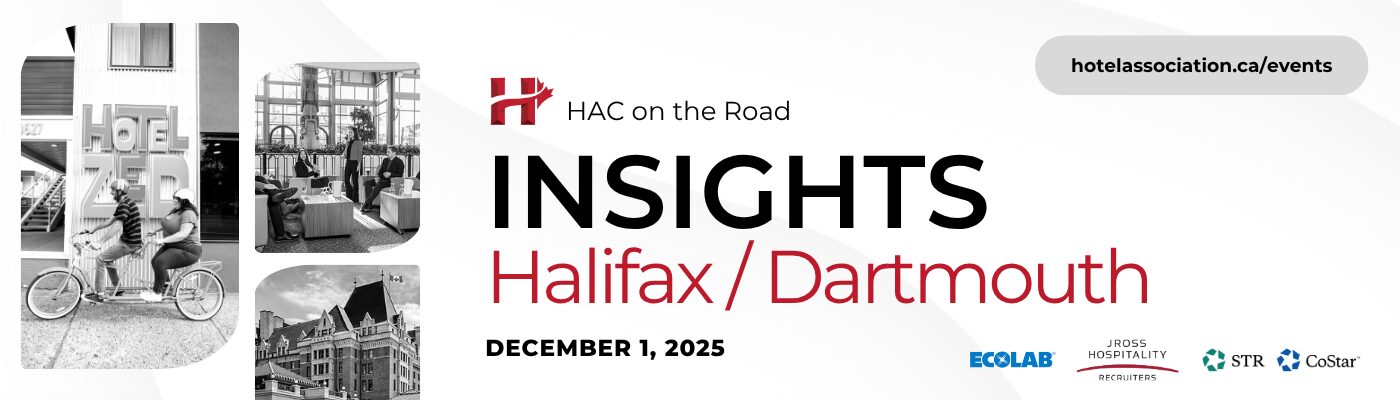 Join us in Halifax/Dartmouth! The Hotel Association of Canada is excited to launch its new Regional Events Series, HAC on the Road: Insights, this fall in Halifax/Dartmouth, NS. Join us for an interactive half-day program designed for leaders from hotel properties in the region. The event will feature: An update on HAC’s advocacy efforts Insights from the latest HAC Workforce T...